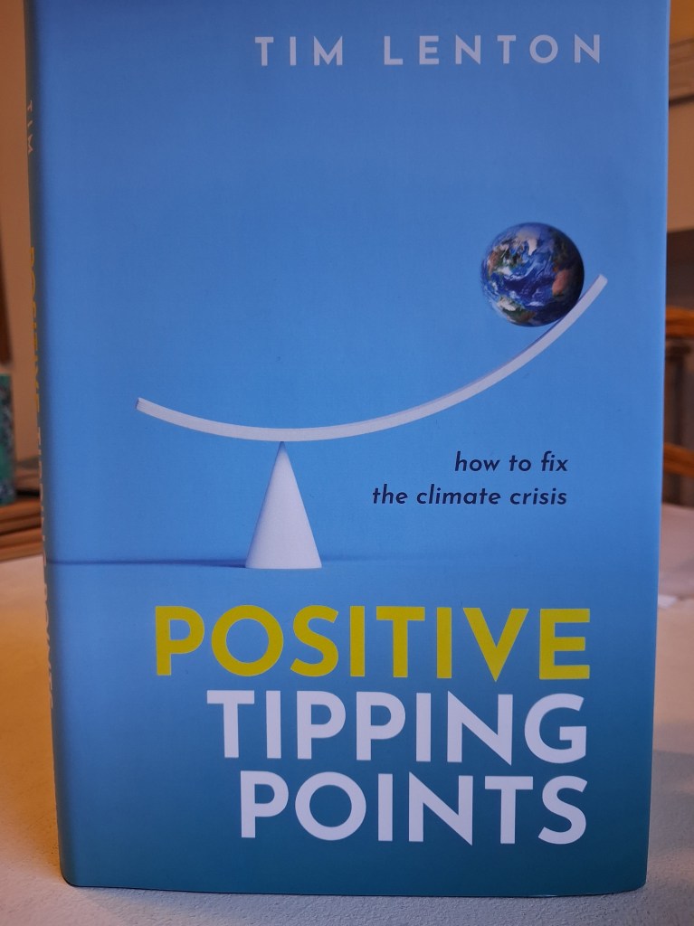 Lenton makes the early point that, “We are in a climate and ecological crisis of our own making.” His focus is on finding the lever which will accelerate positive societal change. “We need to find and trigger positive tipping points that accelerate change in our societies and technology towards sustainability and social justice.”